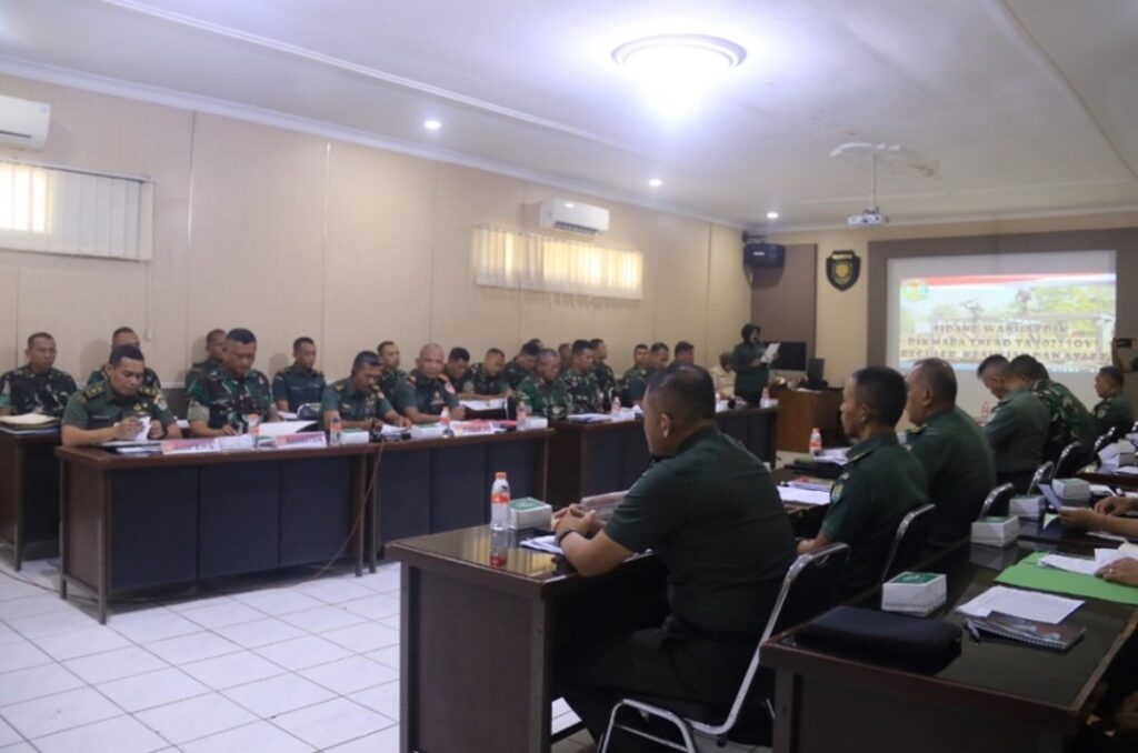 Bandung, Kamis 25 Januari 2024. Bertempat di Ruang Padmawira Rindam III/Slw, Danrindam III/Slw Kolonel Inf Mohammad Sjahroni, S.E., M.Han memimpin sidang Dewan Penasehat Pendidikan (Wanhatdik) Siswa Dikmaba TNI AD TA 2023 (OV).