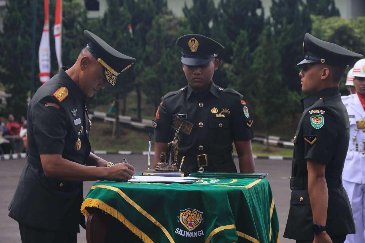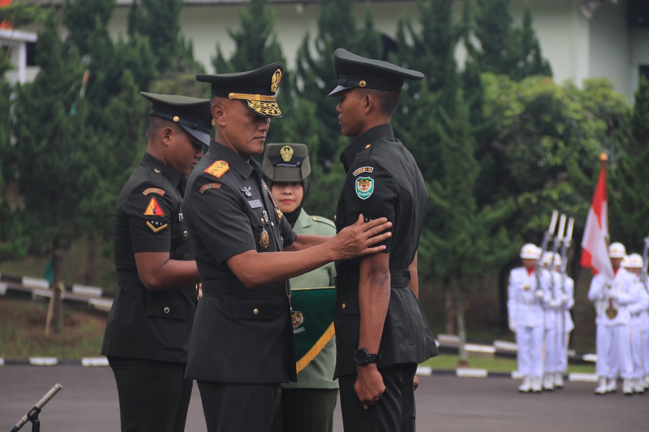 Pangdam III/Slw Mayjen TNI Erwin Djatniko dalam kesempatan tersebut mengucapkan selamat kepada para Prajurit Siswa yang telah berhasil menyelesaikan Pendidikan Pertama Bintara TNI AD TA 2023 dan telah dilantik menjadi Prajurit TNI Angkatan Darat dengan pangkat Sersan Dua.