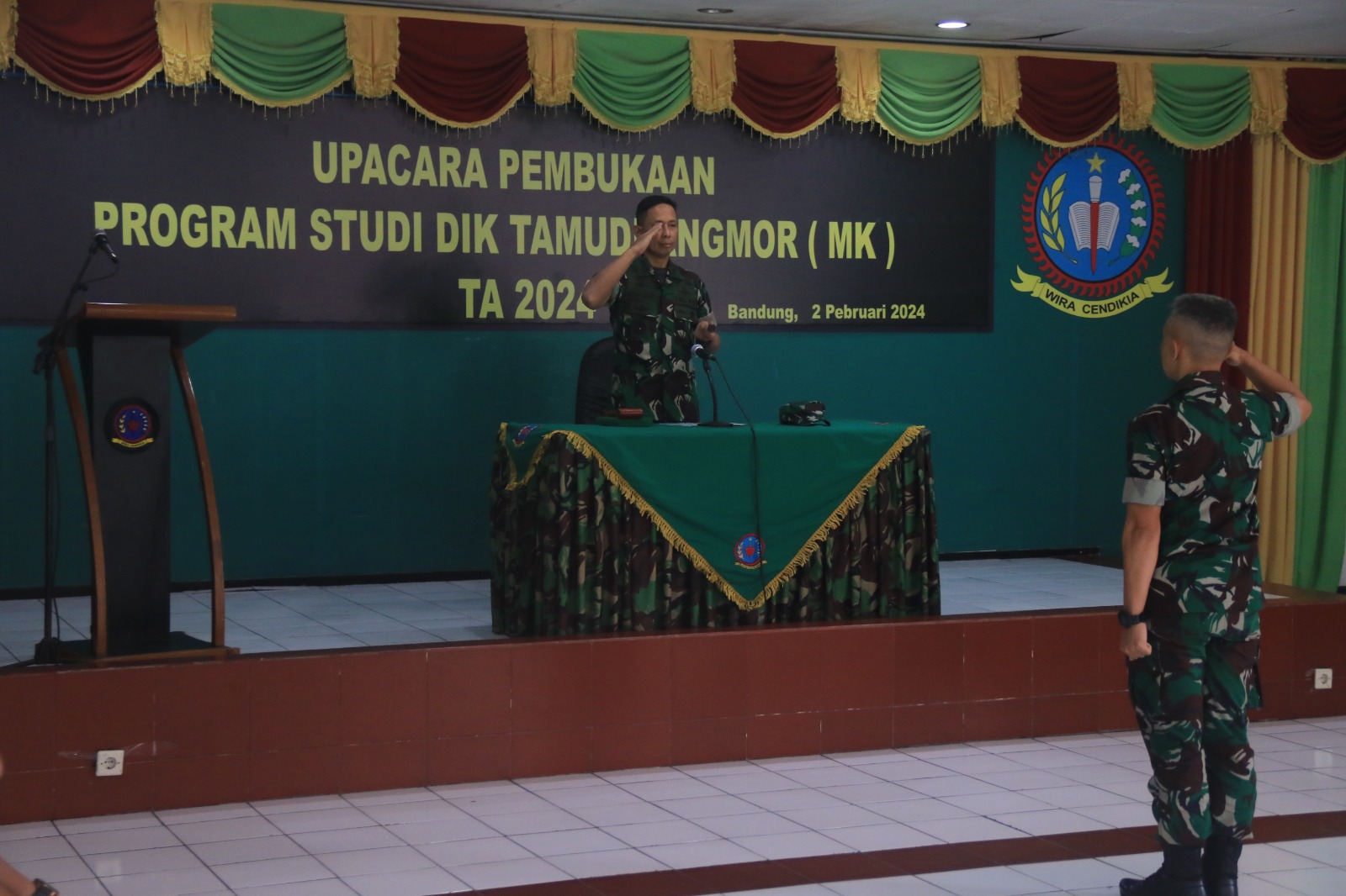 Satuan Pendidikan Depo Pendidikan dan Kejuruan (Satdik Dodikjur) Rindam III/Slw menggelar Upacara Pembukaan Pendidikan Tamtama Pengemudi Angkutan Bermotor (Diktamudi Angmor) MK TA 2024 di Aula Mundinglaya Jl. Menado No.4 Bandung, selaku Inspektur Upacara Danrindam III/Slw Kolonel Inf Mohammad Sjahroni, S.E., M.Han, Jum’at (02/02/2024)