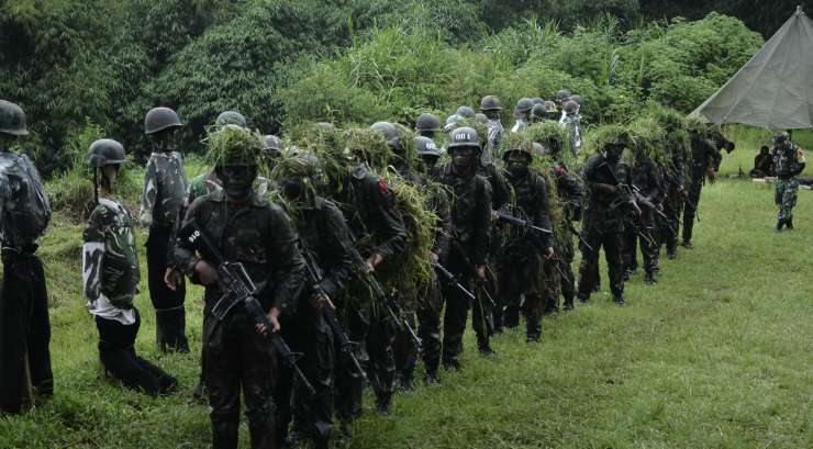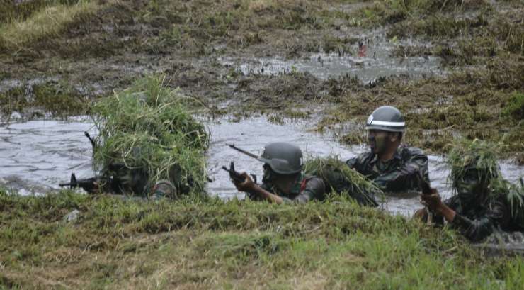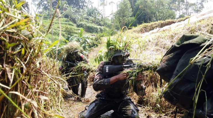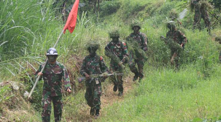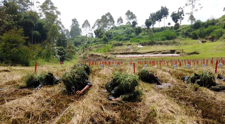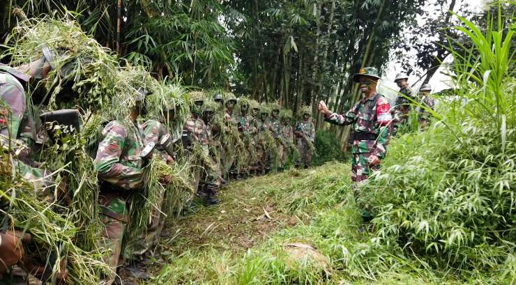 Danrindam III/Slw Kolonel Inf M. Sjahroni, S.E.,M.Han didampingi oleh Dansecata Rindam III/Slw Letkol Arm Yan Octa Rombenanta, S.Sos meninjau langsung pelaksanaan materi latihan IC (Infiltrasi Course/Perembesan).