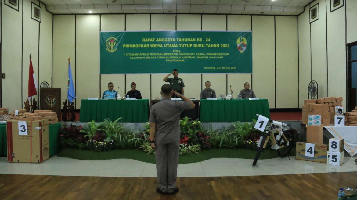 Bandung, – Kabagum Rindam III/Siliwangi Letkol Inf Erwin Rohayadi mewakili Danrindam III/Siliwangi Kolonel Inf Lukman Hakim beserta Ketua Puskop Kartika Siliwangi, Kadiskop dan Usaha Kecil, Dekopinda, Ketua Primkop Kartika Widya Utama Kapten Inf Roby Yahya, dan dihadiri oleh Anggota Prajurit dan PNS Rindam III/Siliwangi (berjumlah 322 orang) . dalam Acara Rapat Anggota Tahunan dan Pemilihan Ketua Primkop Kartika Widya Utama (Kaprim).…